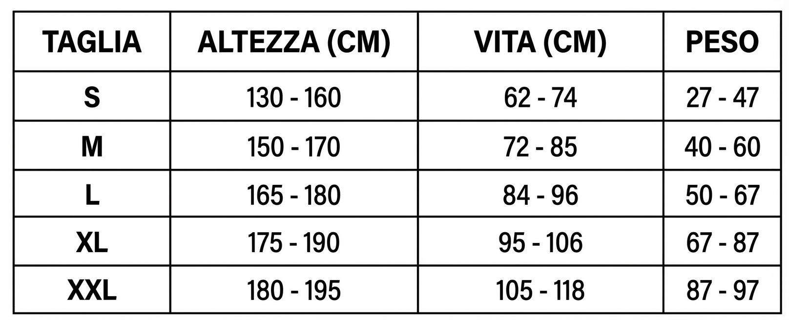 Scegli la tua taglia